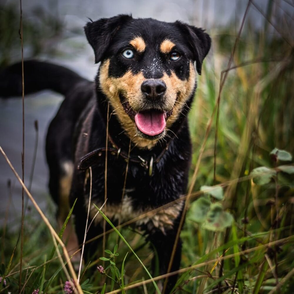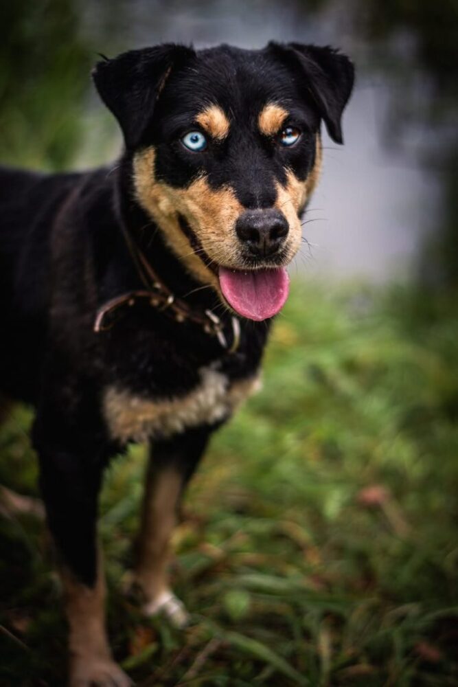 Leila mit ihren hypnotisierenden Augen. Sie ist sehr aktiv und sehr aufgeschlossen gegenüber Menschen. Leila lebt jetzt in einem Tierheim in einem Dorf, das von Feldern und Wäldern umgeben ist. Dort kann man ihr ohne Leine vertrauen und sie kommt, wenn man sie ruft (in einem neuen Zuhause würde das natürlich nur mit Zeit und Arbeit gehen). Sie ist im Tierheim gelandet, als ihre Besitzer ins Ausland gezogen sind und sie zurückgelassen wurde… vielleicht zum Guten, denn sie hat ihr Leben in einem Zwinger verbracht, und das wollen wir nicht für sie. Wir möchten, dass Leila ein Teil der Familie wird, viel Beschäftigung und Abwechslung bekommt und viel Zeit in der Natur verbringt.